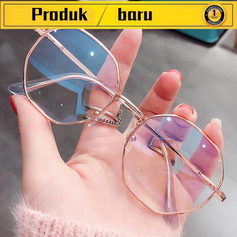 Cermin Mata Glasses Pelajar Perempuan Kacamata Myopia Versi Korea Pasang Boleh Dilengkapi Dengan Bingkai Cermin Mata Poligonal Darjah Anti Radiasi Biru Cermin Rata Lelaki